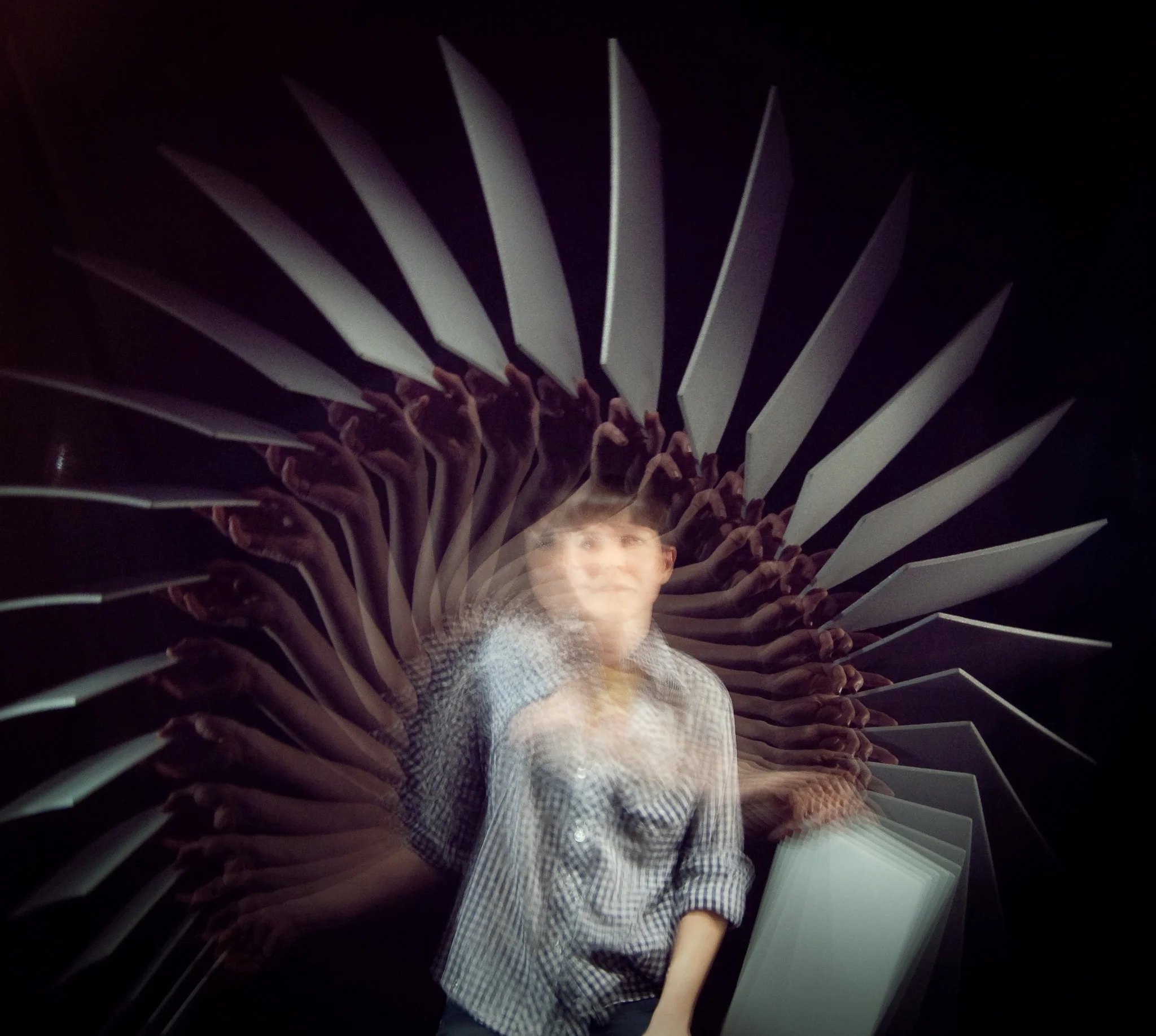The stroboscope uses an electric motor and a digital camera to capture stunning photographs of objects in motion. The camera is set to take long exposures while a slotted disk spins in front of its lens. Each time the slot spins past the lens, the camera gets a glimpse of your subject and adds another layer to the image. The resulting photograph is a record of your subject moving through space and time, and these images often reveal beautiful patterns that would otherwise be invisible to us. The original version of the strobe-o-scope is on display at the exploratorium in san francisco, and There is also a diy version that we created for make magazine.
