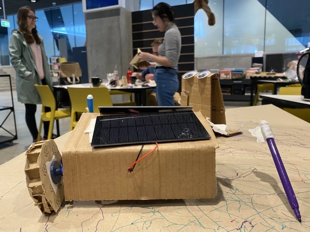 A couple weeks ago, I had the opportunity to visit the makerspace at Dokk1 Library in Aarhus, Denmark as an tinkerer-in-residence to help prototype new ideas for playful experiences using solar panels, motors and electronics. For this project I got to collaborate with long-time collaborator Amos Blanton of Aarhus University and a team of local educators and designers that he has been working with at the library.