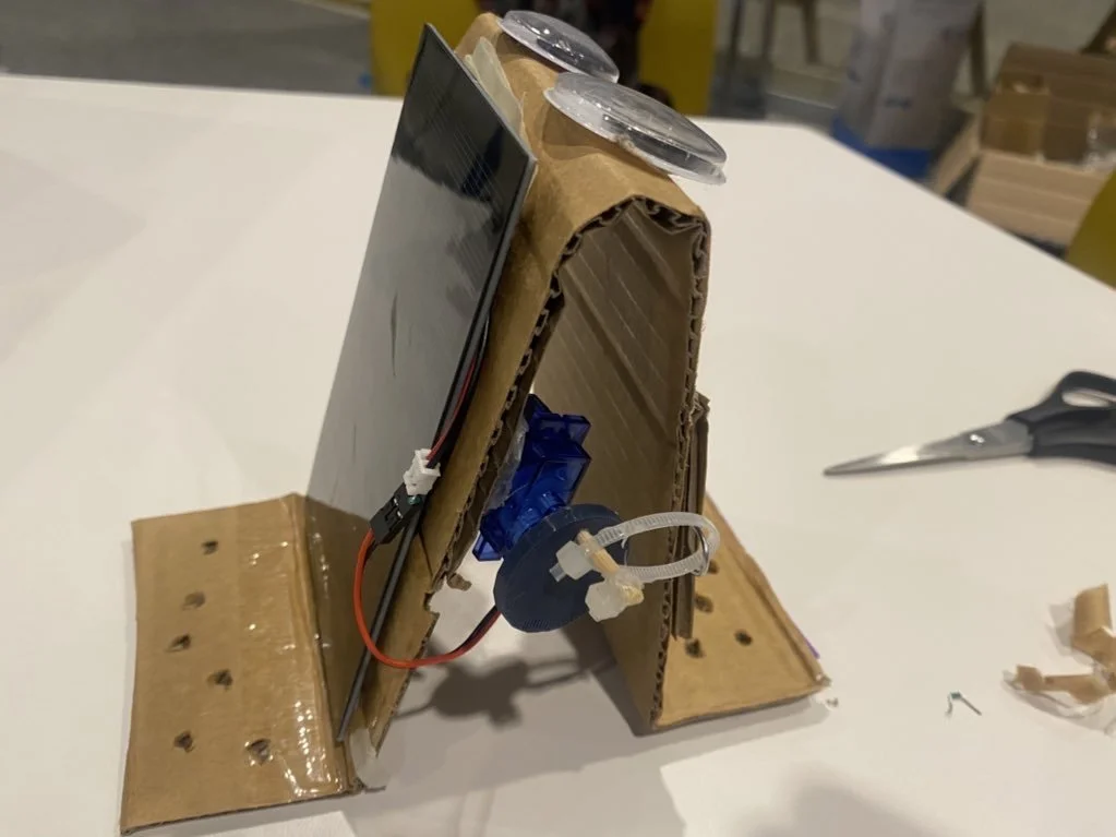 For the drawing machines, it was interesting to use multiple motors powered by solar panels at different angles. This allowed for the machine to move fast and slow at different rates depending on the position of the solar panel. Although these are more complicated than a traditional scribbling machine, there’s a lot of potential to explore the wide walls of the investigations.