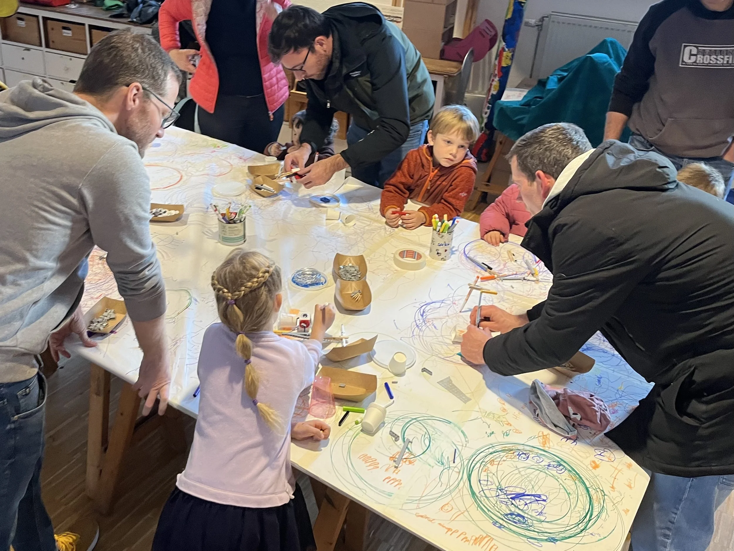 Even more than we had thought, the workshop was packed with people with a huge crowd gathering outside the space ten minutes before the start of the event. Instead of a more relaxed drop-in format, we quickly decided to switch to 30 minute workshop intervals so that as many people as possible would have a chance to experiment with the activities.