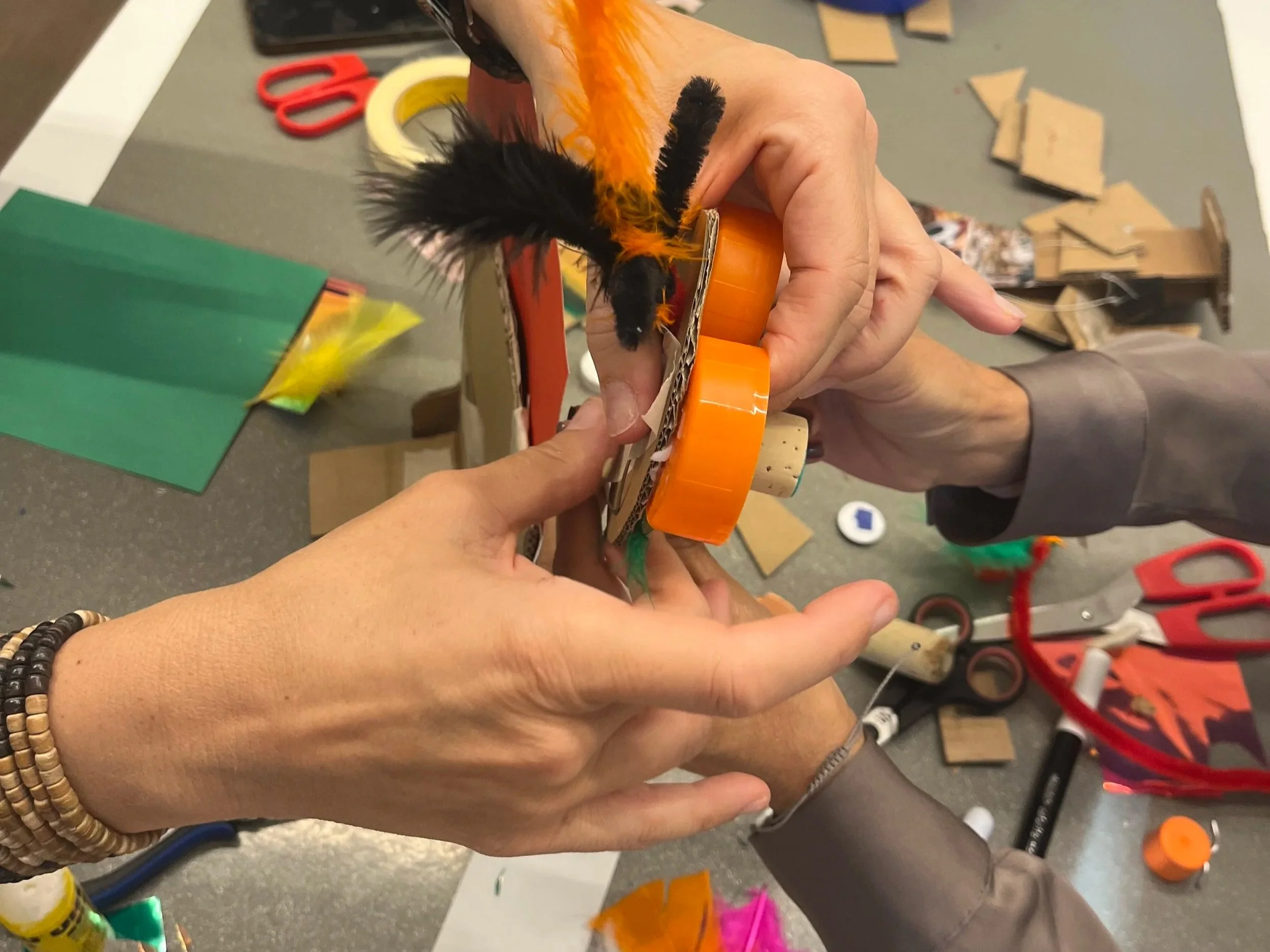 The afternoon of the second day also was special because we invited in kids and families from the public to dive into the world of tinkering and creative learning. I led two more sessions of building cardboard automata and was again impressed by the ambitious ideas and innovative designs.