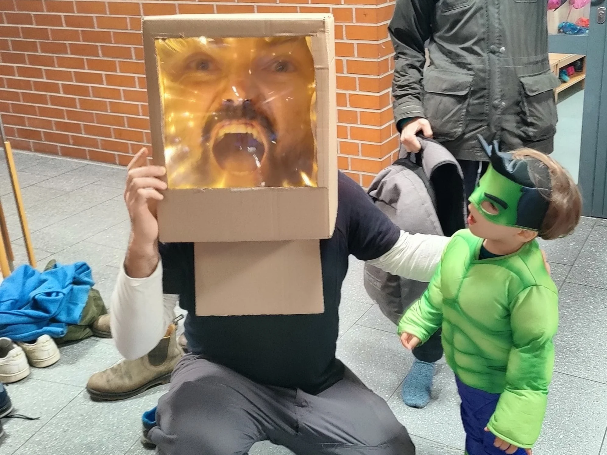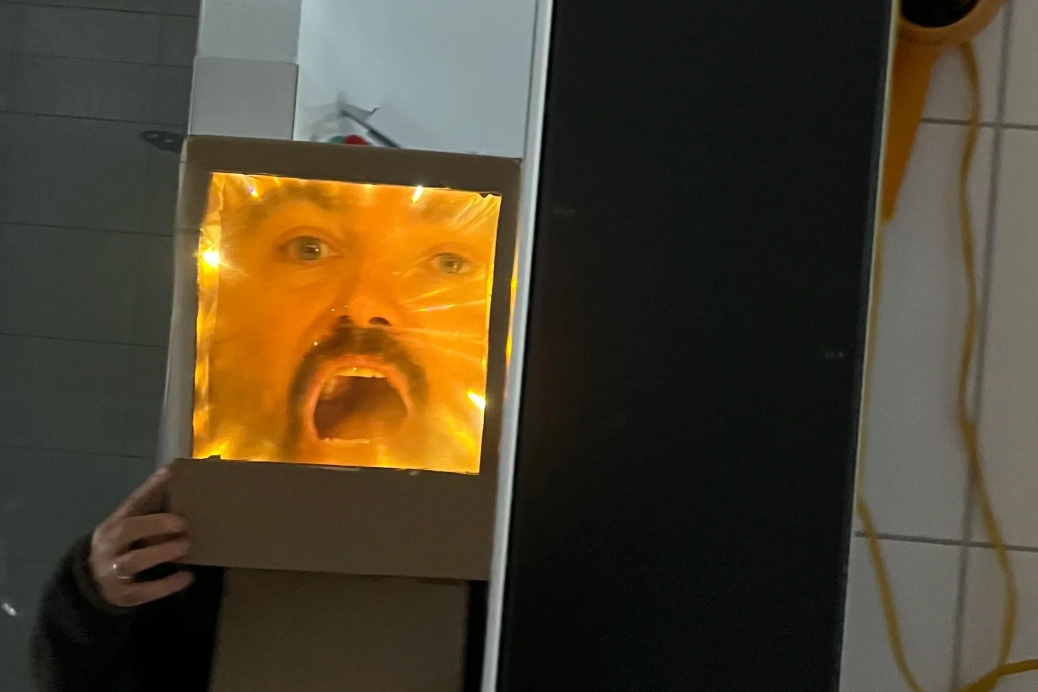 The effect was amazing and when I took it to a local Halloween party both kids and adults were amazed at the way it magnified their faces. It wasn’t easy to walk around the space for a long period of time but that wasn’t a problem as so many people wanted to try the box and take a photo of themselves with a mightily distorted face.
