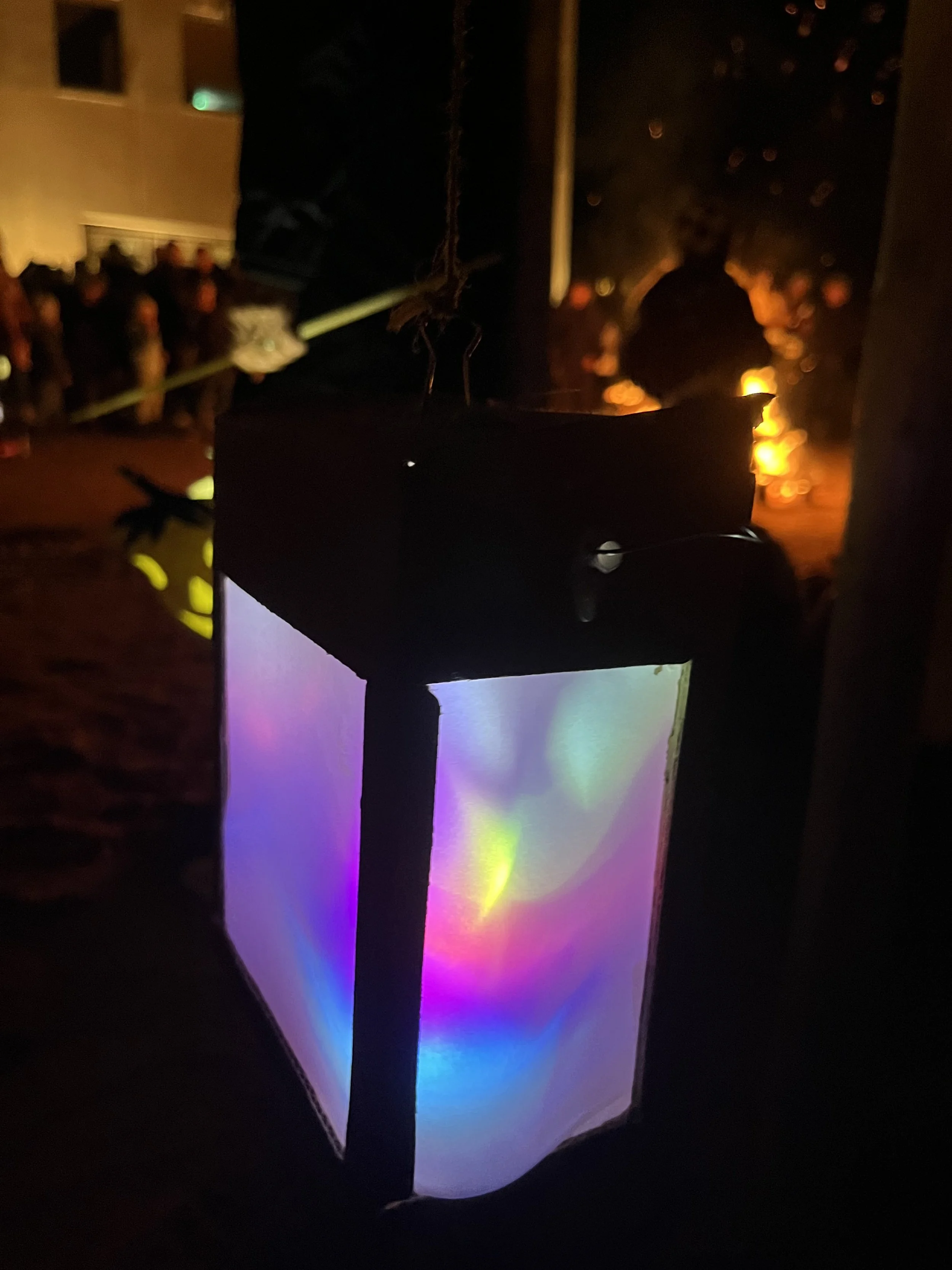 We brought the lantern to the local parade and bonfire to celebrate the unofficial start of the winter season. One challenge was that it can’t really be cranked when carried so maybe next time I would add a motorized automata mechanism with a switch on the handle to turn on the motor.