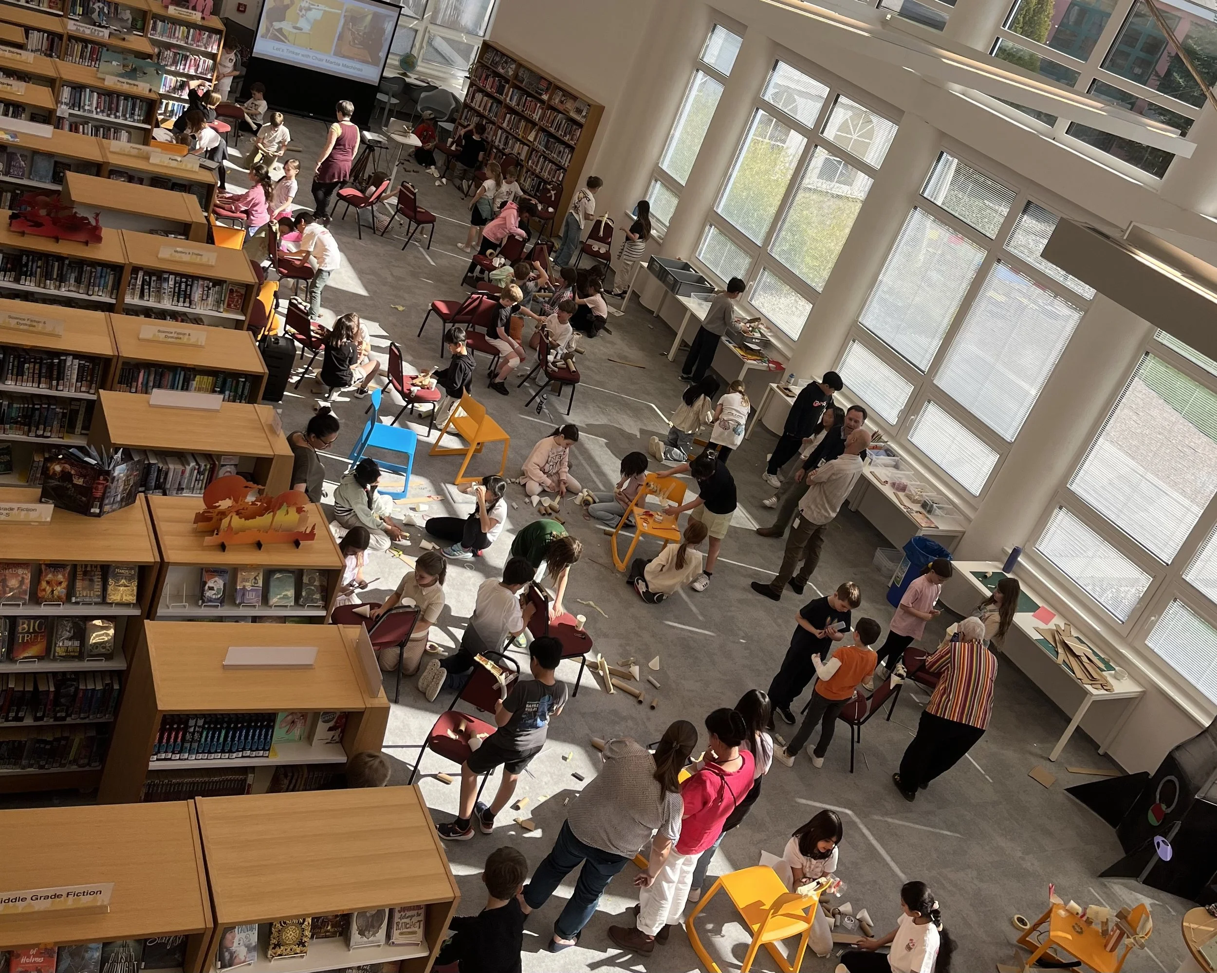 The idea of 70 kids all working on the marble machines project at the same time in the library space felt a bit intimidating but as soon as they all started working there was a buzzing focused energy in the space. The time flew by and many of the teachers were impressed by the challenges that the students set for themselves and the explorations that they tried.