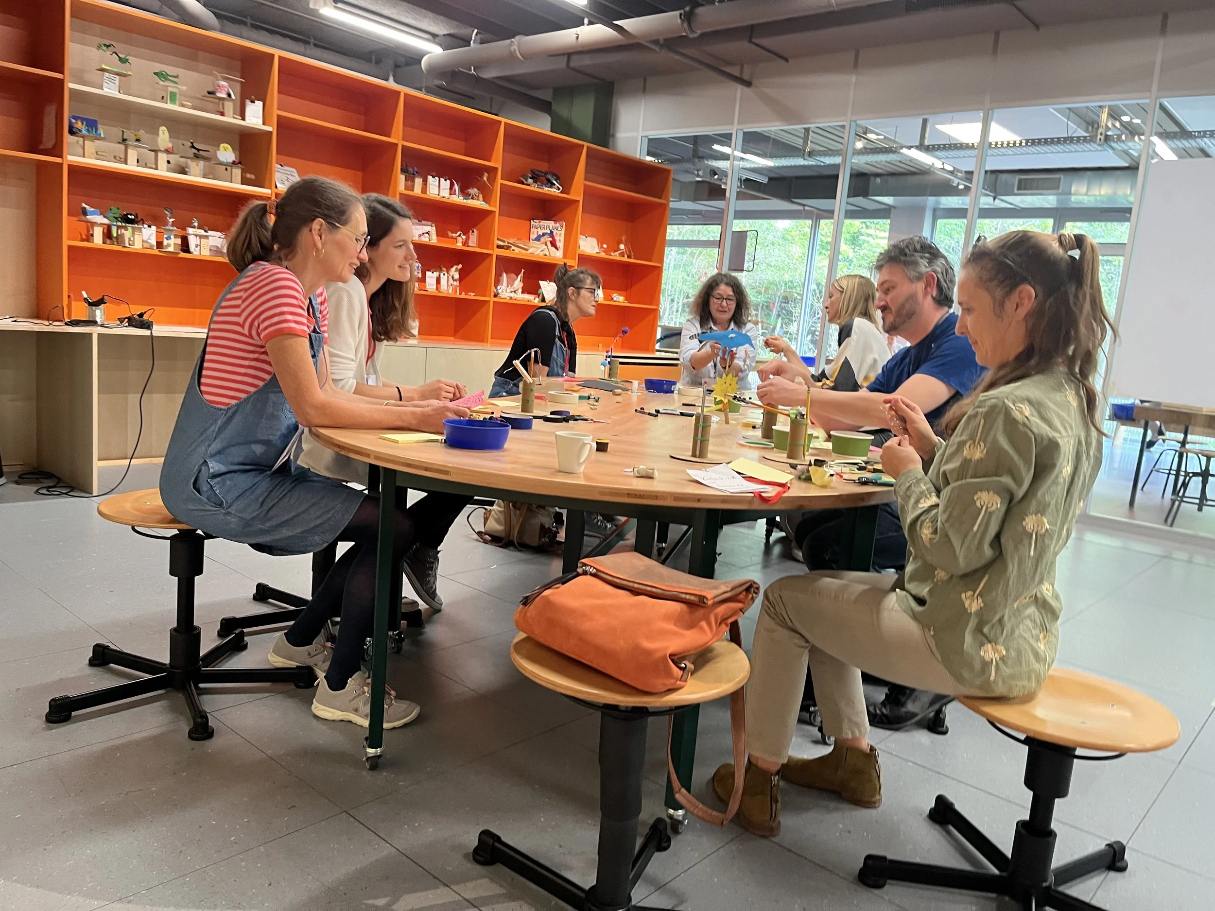 This past weekend I led two experimental tinkering workshops at the bildungs congress (education conference) at Technorama science center in Winterthur, Switzerland. For the theme of the sessions I build on the ‘weighted wobblers’ exploration in my book, The Tinkering Workshop, and added in some motors to offer the possibility to build spinning balancing sculptures.