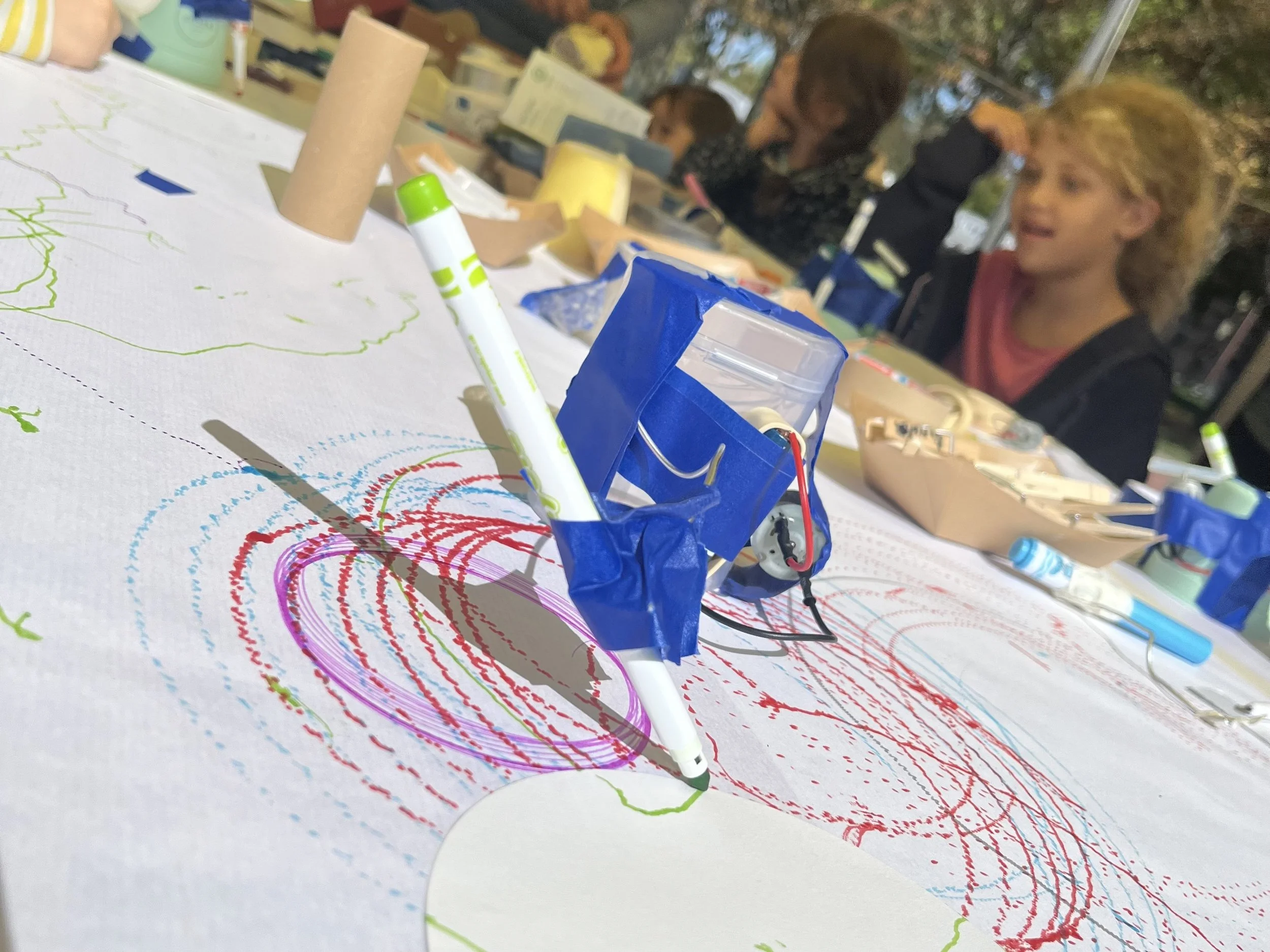 At the event I tried out two favorite activities featured in my book, The Tinkering Workshop. On Friday, we explore kaleidoscopic reflections and on Saturday, kids and families built “old-school” scribbling machines with vibrating offset motors. With both activities there’s still so much to learn and experiment and I really enjoyed the iterative process over the two days of tinkering. Here are a few quick reflections from the event: