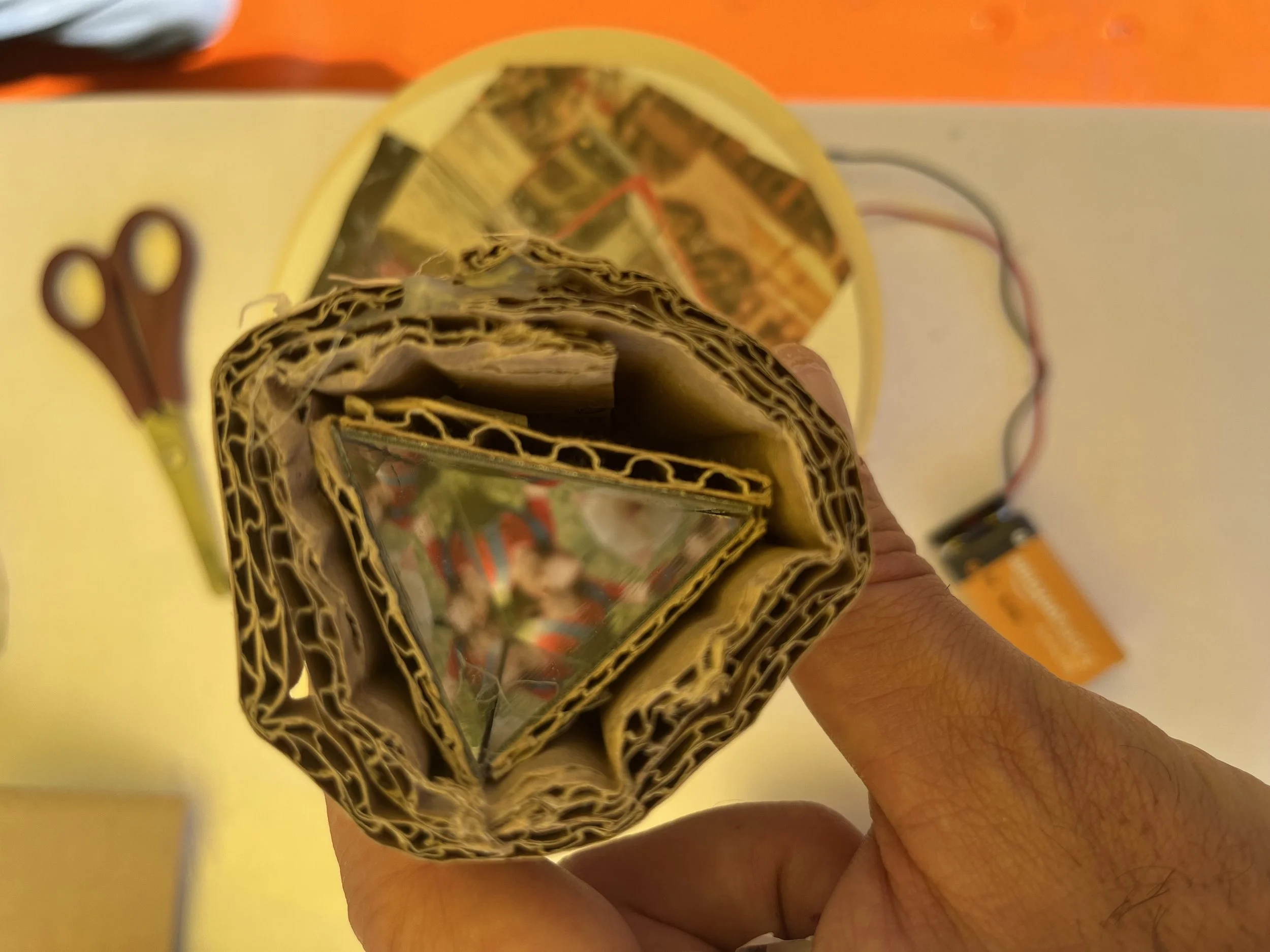 Both art machines and kaleidoscopes can be set up as a more open or closed ended experience depending on the choices the educators make. For my tinkering projects, it’s important to have the possibility for ‘wide walls’ where each of the projects look different because they reflect every individual’s ideas. One way to support this aspect of the learning experience is to prepare a set of materials so that it’s impossible to copy one design over and over again. For kaleidoscopes all of the mirrors and cardboard were cut in different ways and for the scribbling machines I didn’t have more than two of any type of recycled cup body.