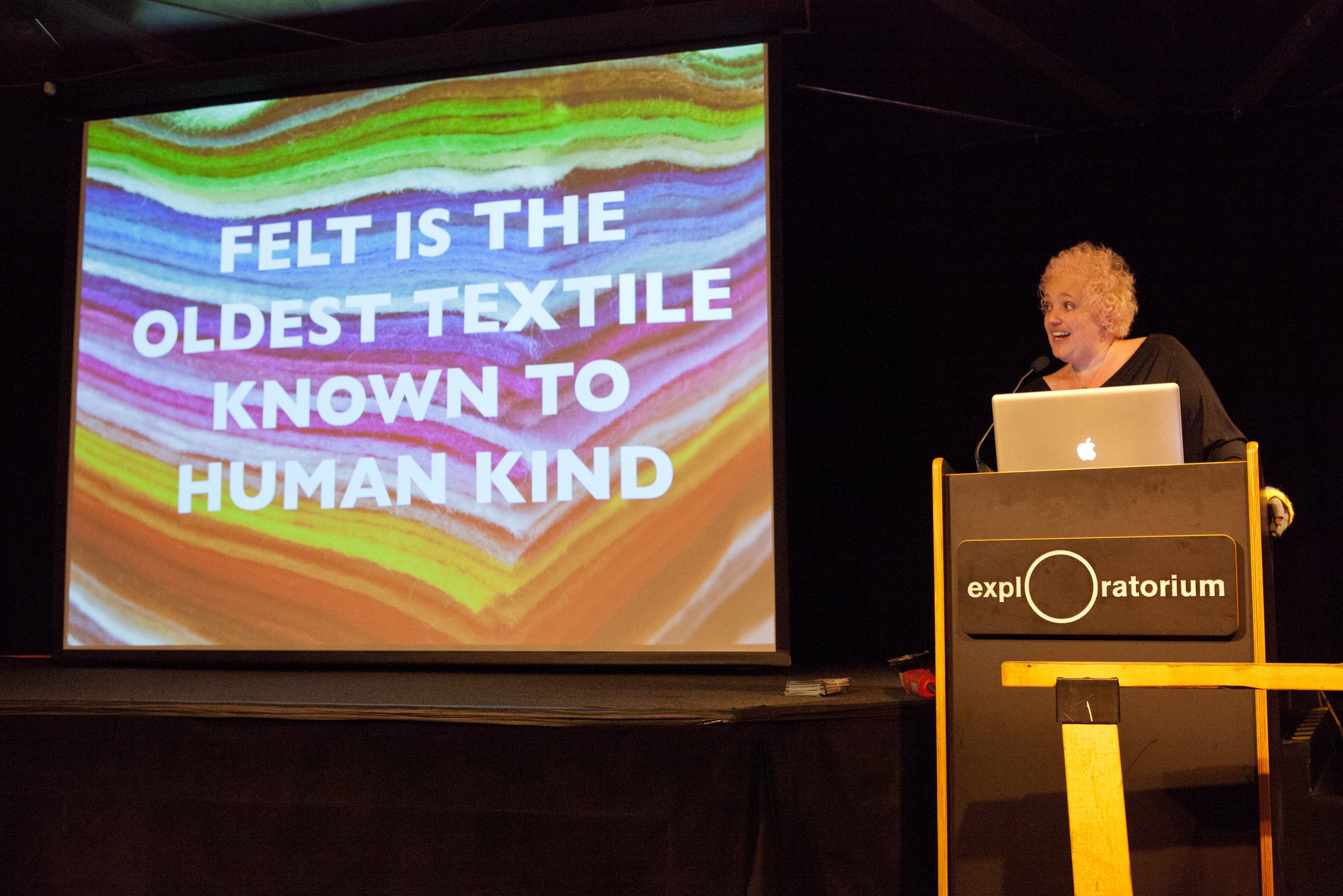 And not only did Moxie share her projects with us and the world but she also taught others the joy of felting. I remember that the whole tinkering studio group (and even Tim Hunkin visiting for a month-long residency) got seriously addicted to repetitively stabbing loose fibers with a barbed needle until 3D shapes started to form. One specific memory I have of felting was a lunch time meet-up during a period of hard times with museum layoffs and mismanagement where we took out our frustration on the poor defenseless felted fibers.
