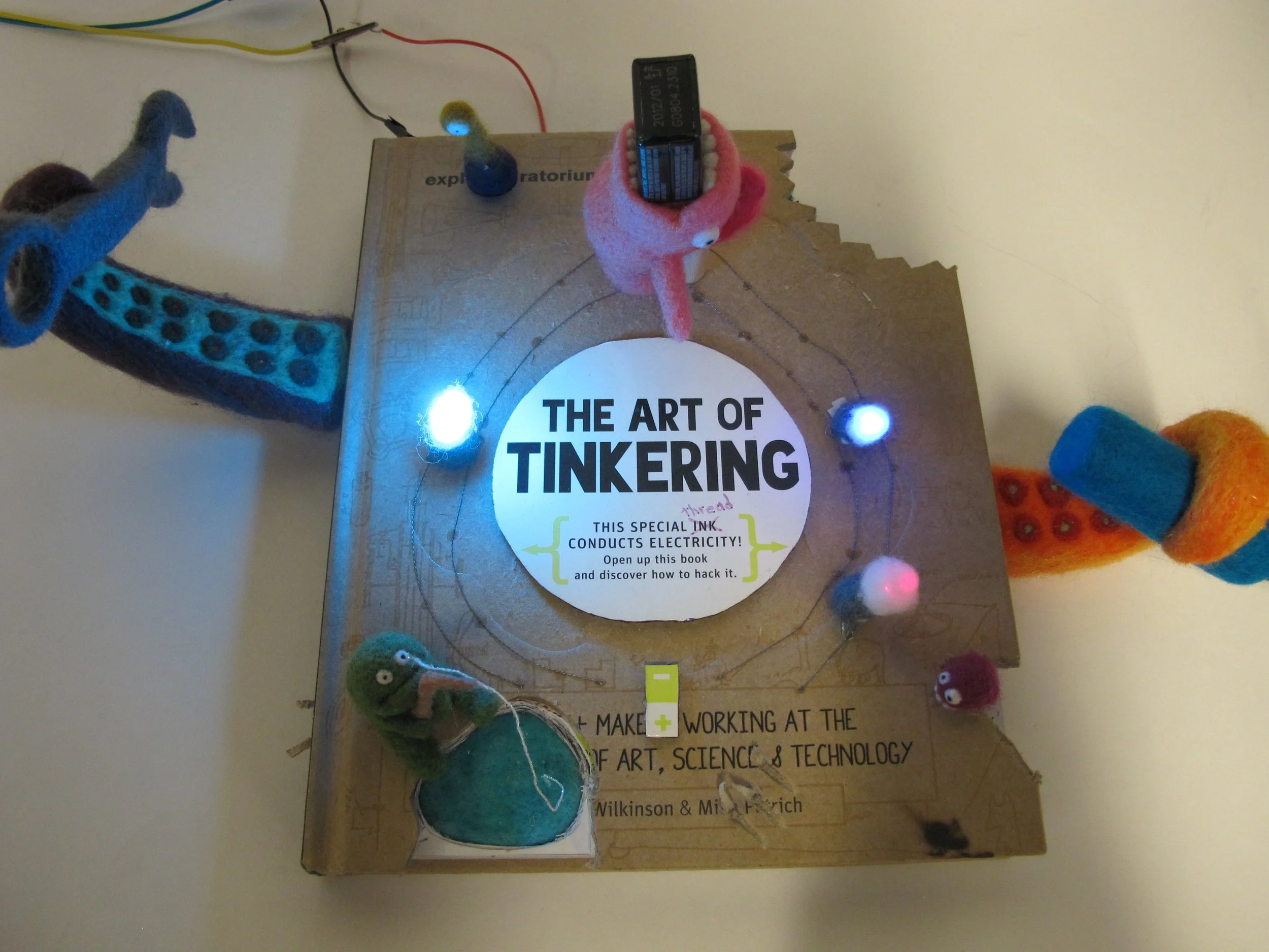Speaking of books, I have to also share a bit about the hilarious way that Moxie hacked the Art of Tinkering during a promotion where we asked the featured artists to use the conductive ink on the cover to personalize the book. I was cracking up just seeing the incredible little characters, circuit explorations, bite and scratch marks and all on the book. Let’s just say that she “understood the assignment”.
