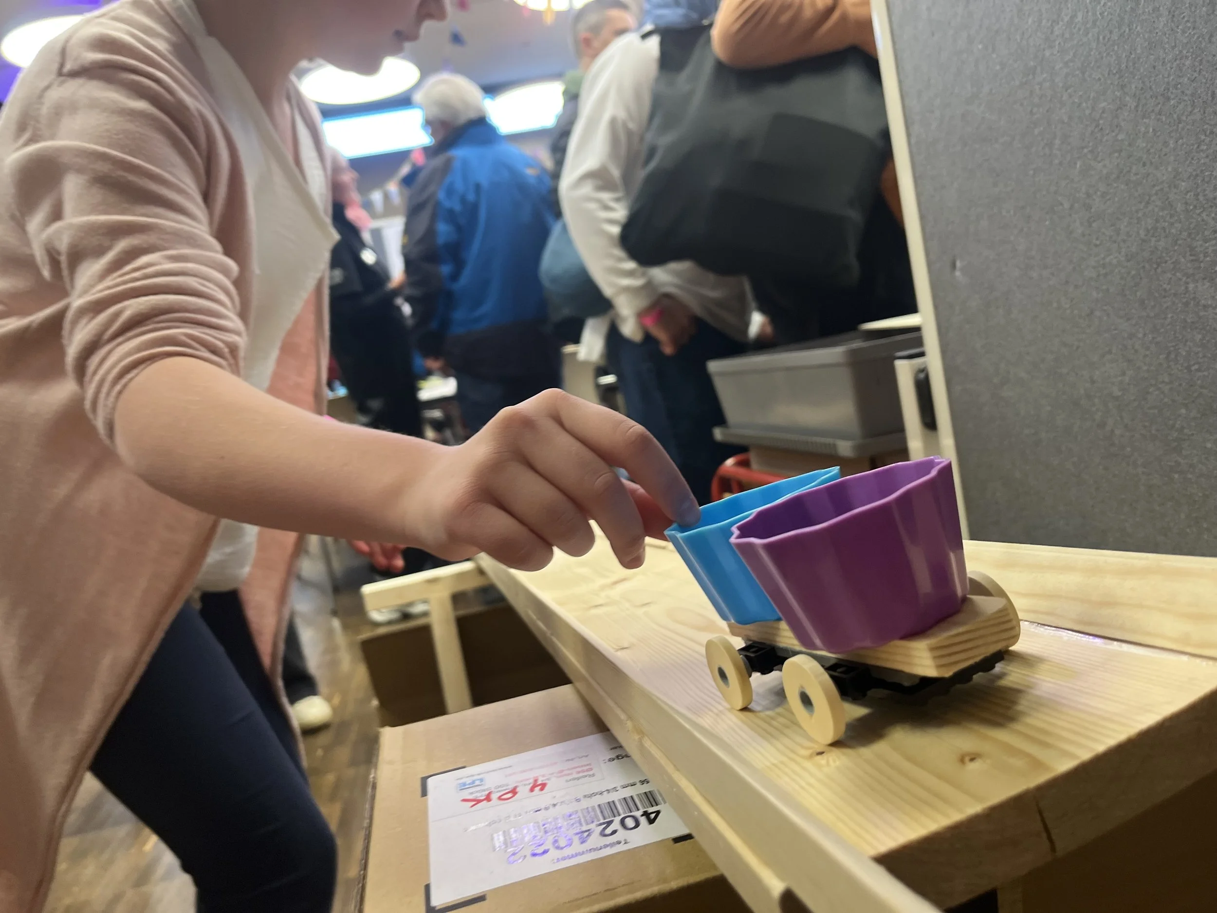 I would like to better understand how to place a larger emphasis on the testing and phenomenon. I think two or more tracks together would help learners compare designs. I also want to build a simple timer system. And some of the materials like off balanced weights, sails and ways to change the wheel orientation might encourage more play with the phenomena like friction, acceleration, gravity and stability.