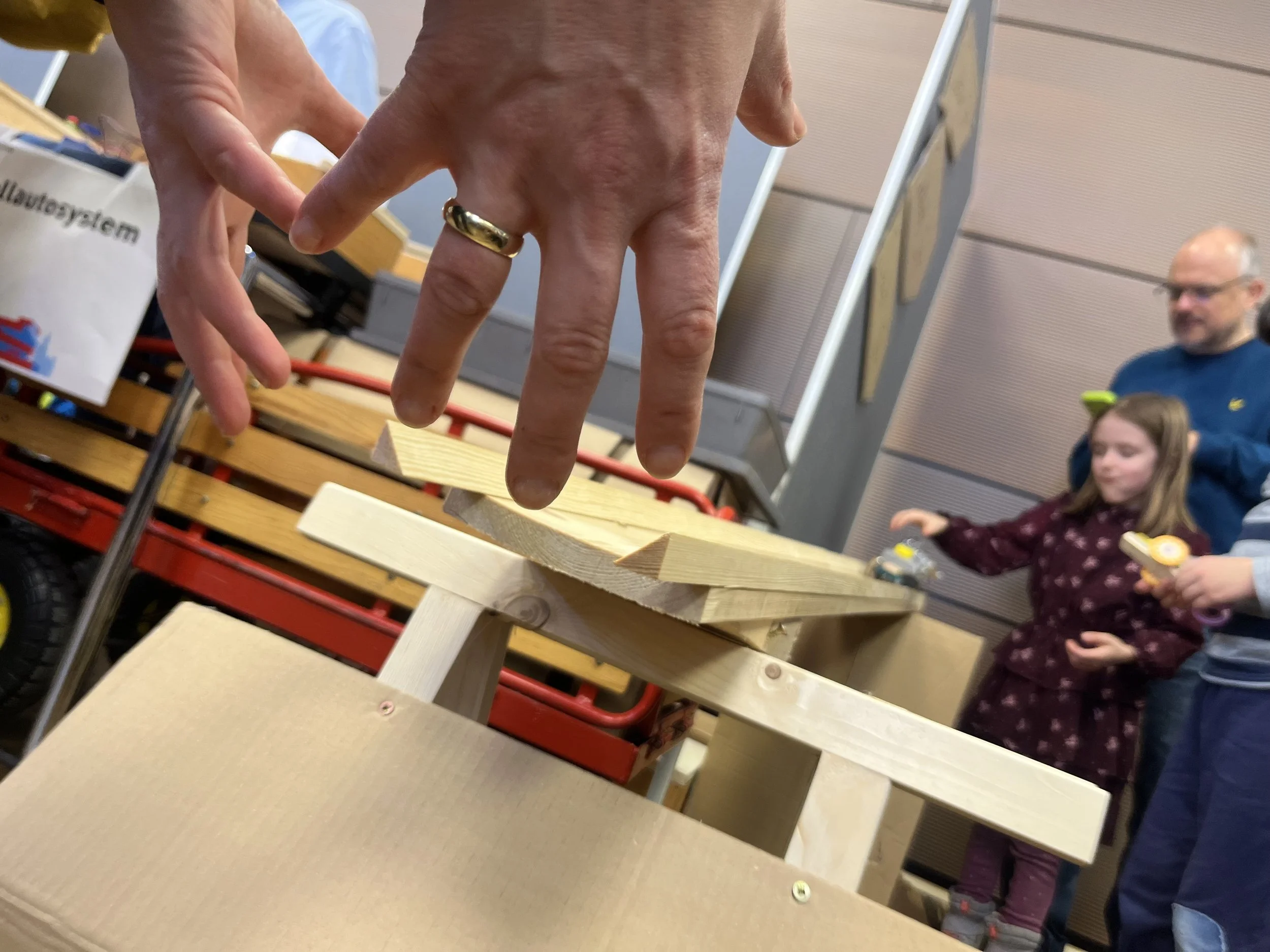This weekend I set up a tinkering activity at Maker Faire Heilbronn in Der Makerspace at Experimenta science center. It was my third time participating at this wonderful community based celebration of making and tinkering. To set up the theme for this year’s projects I drew on two prototypes that I’ve been working on with OliOli children’s museum in Dubai over the last months, cars & ramps and musical bench.
