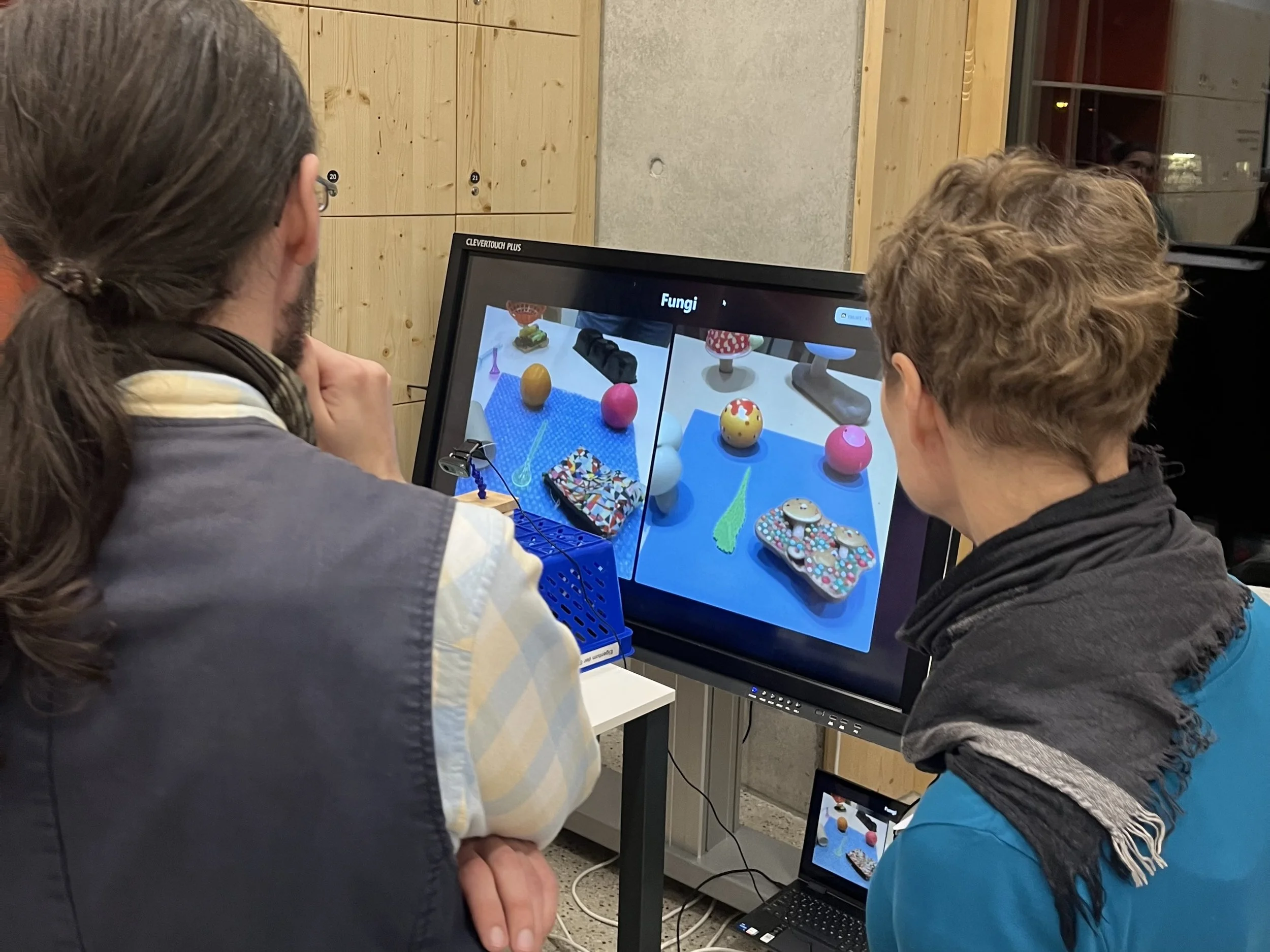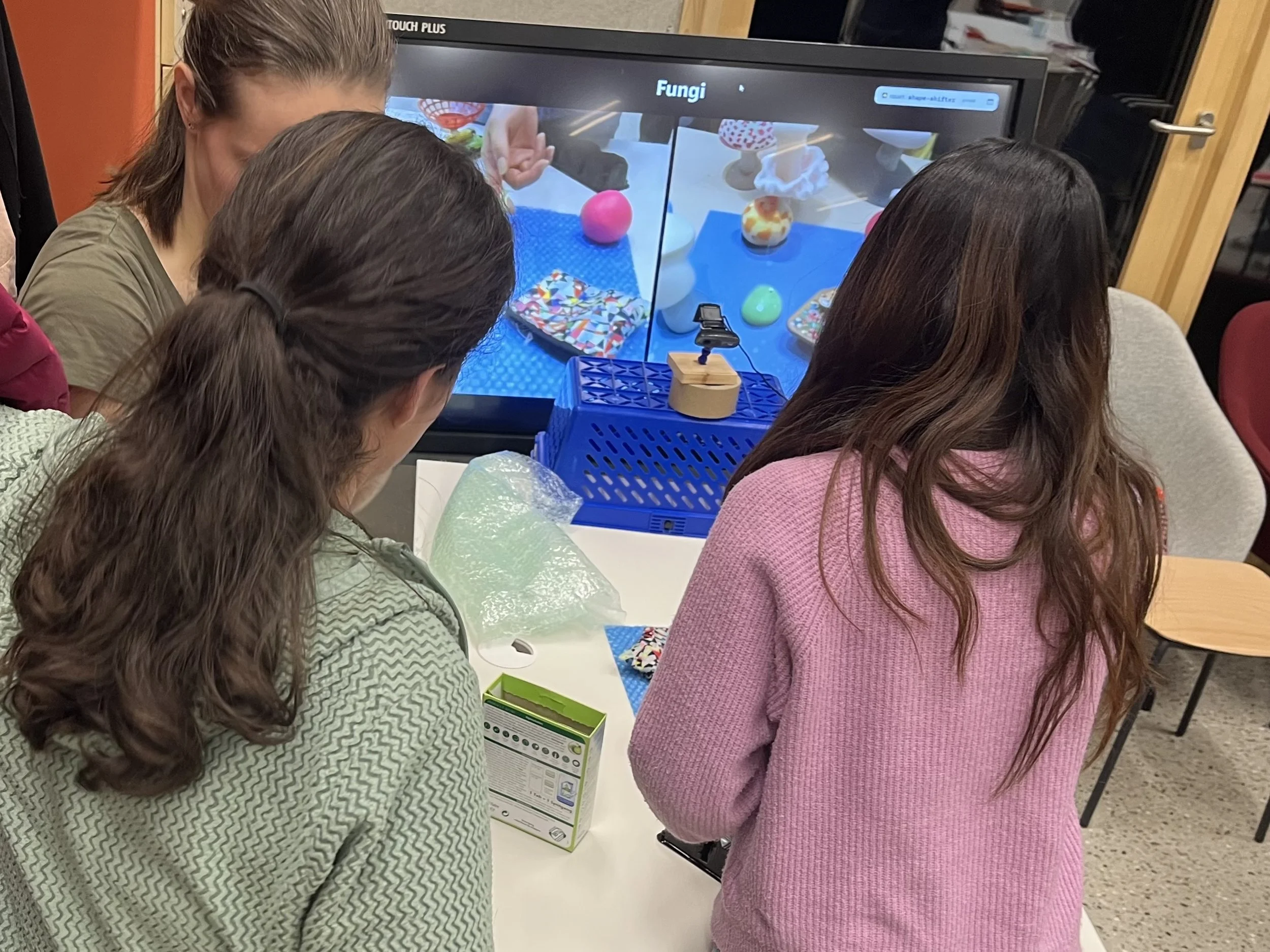 We also had the chance to test out a version of Radames Ajna’s AI shapeshifter which blends physical construction with AI image generation. Recycled materials like egg cartons, yogurt containers and used bubble wrap make really interesting results with the program.